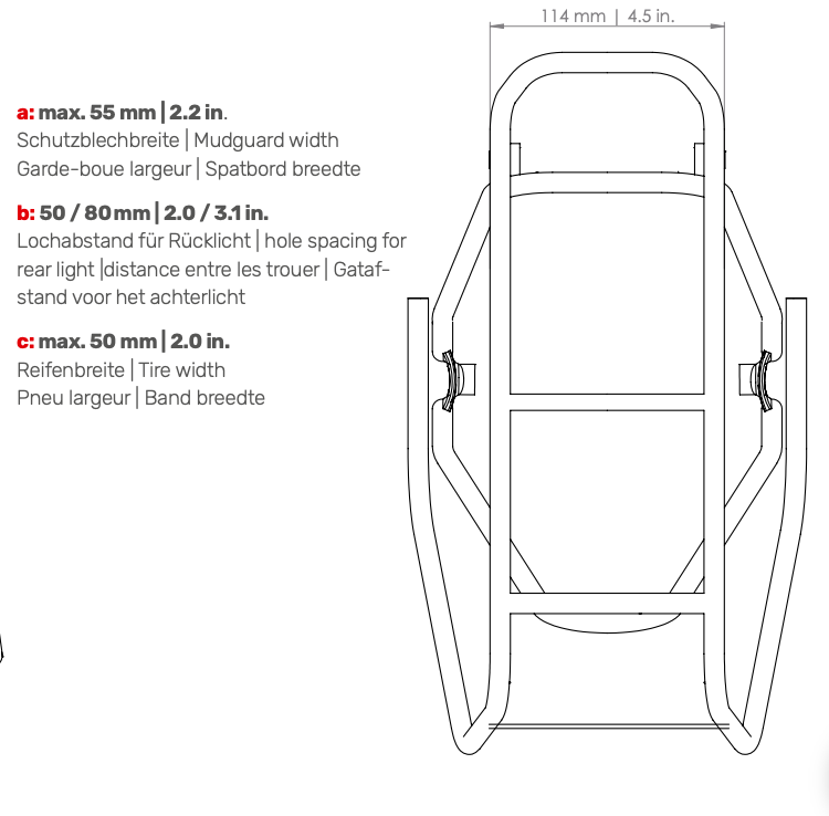 Bagažinė optimaliai paskirsto apkrovą ir sugeria smūgius, o srieginės jungtys padeda patogiai tvirtinti laikiklius. Galinio žibinto laikiklis turi apsaugą nuo smūgių, o prireikus – galima papildomai uždėti spyruoklinį laikiklį (spring clamp).